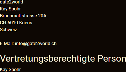 Der Autor übernimmt keine Gewähr für die Richtigkeit, Genauigkeit, Aktualität, Zuverlässigkeit und Vollständigkeit der Informationen.